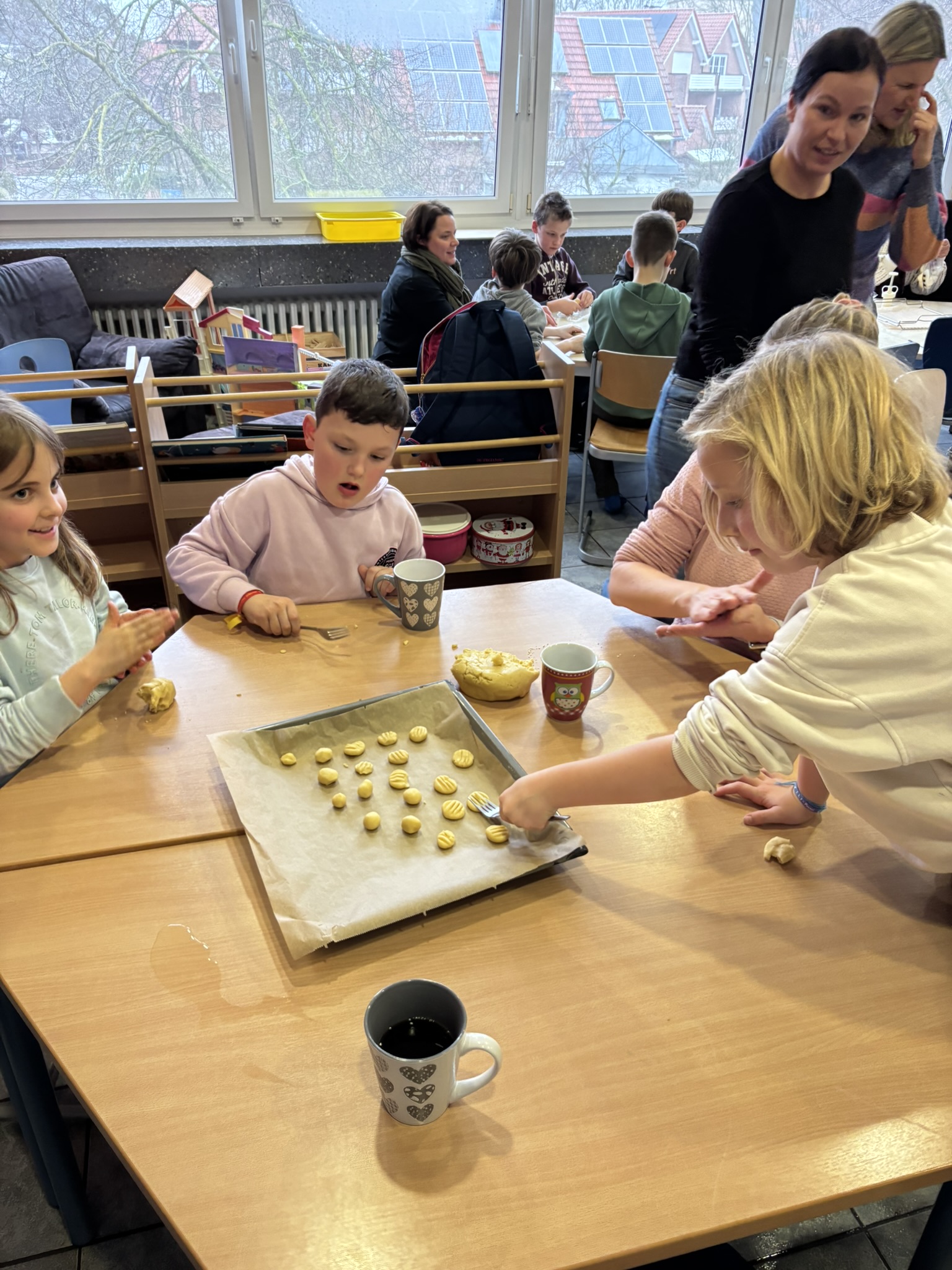 Nachdem die Backaktion der Klasse 3a aufgrund von zahlreichen Krankheitsfällen vor Weihnachten verschoben werden musste, holte man diese nun in der ersten Schulwoche nach den Ferien nach. Dank der großen Beteiligung von Kindern und Eltern, wurden tolle Plätzchen gebacken und verziert, die nun bestimmt bis Ostern die Frühstückspausen versüßen werden. ;-)