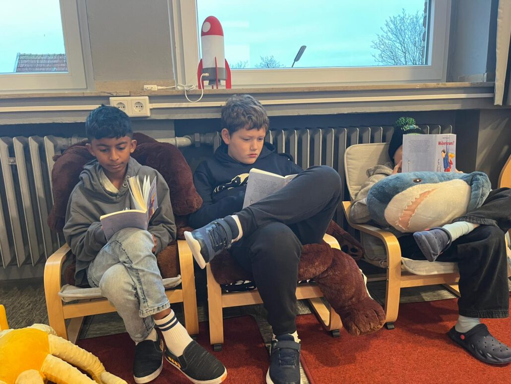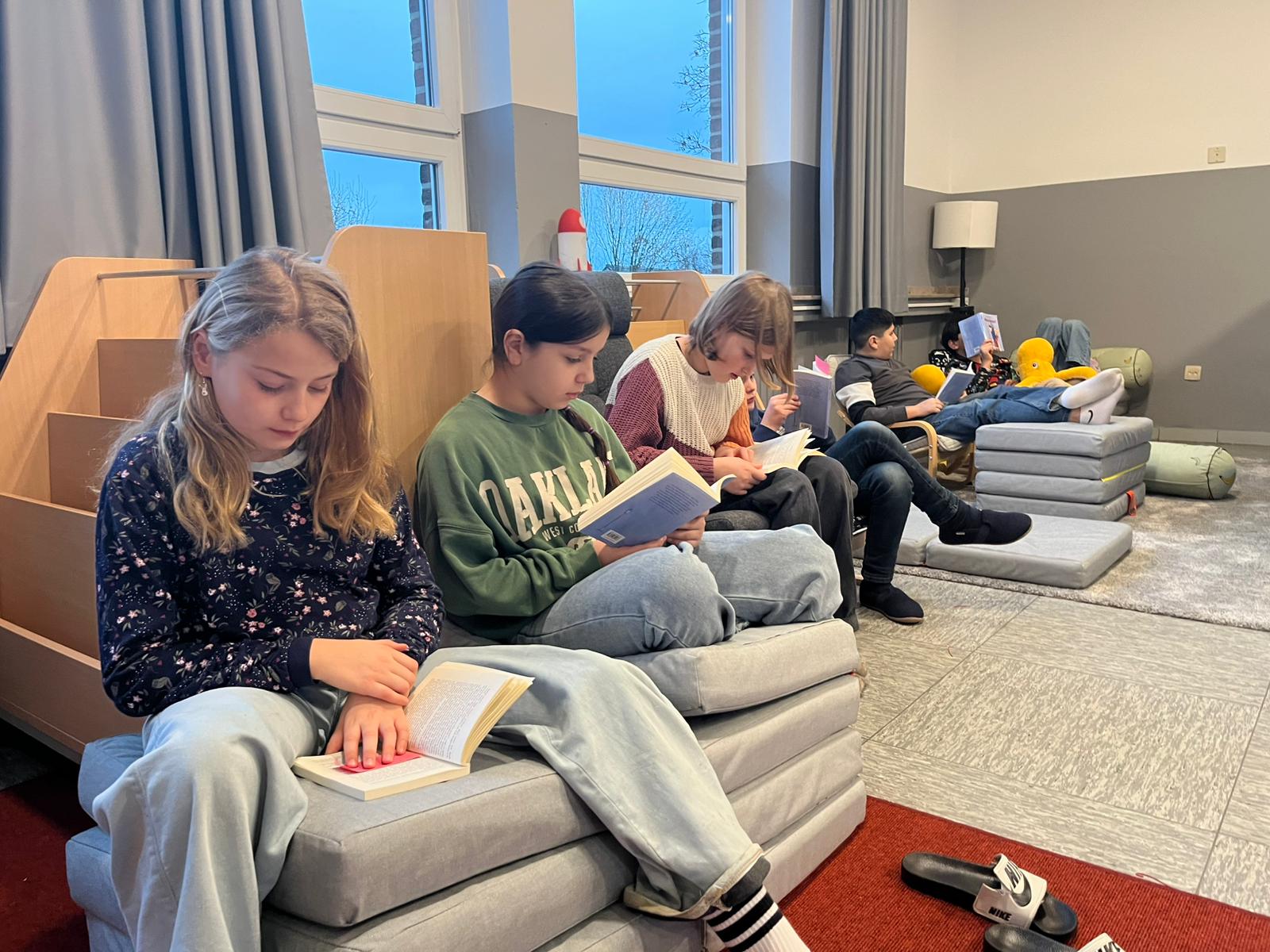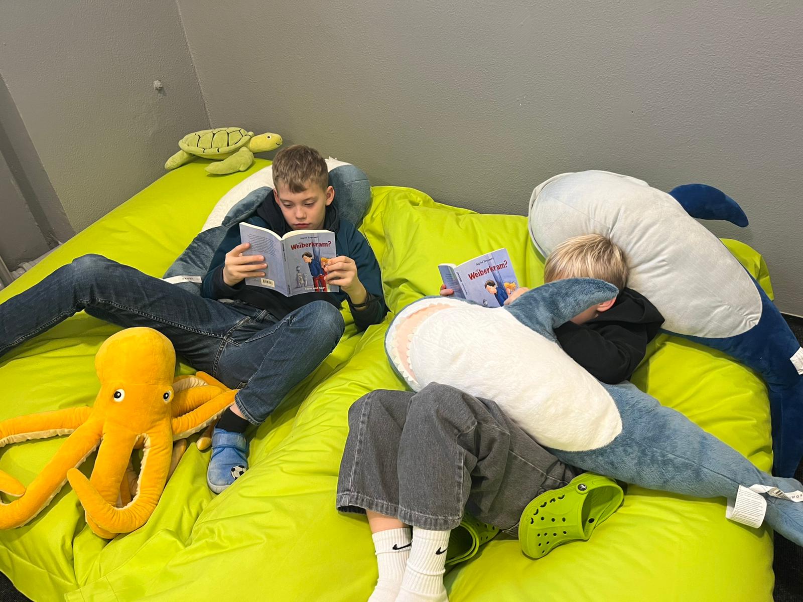 Das Highlight der Klasse 4b ist es, die gemeinsame Lesezeit in der Leseoase zu verbringen. Die Kinder lieben es und können sich dort besonders gut konzentrieren. Außerdem macht es doppelt Spaß, weil es so gemütlich ist. So wunderbar, dass unsere Schule diese tolle Leseoase hat.